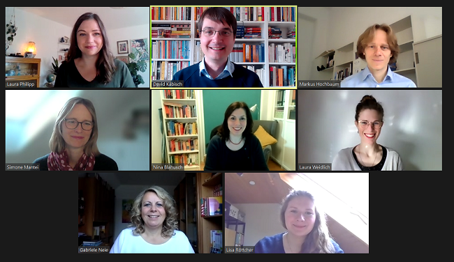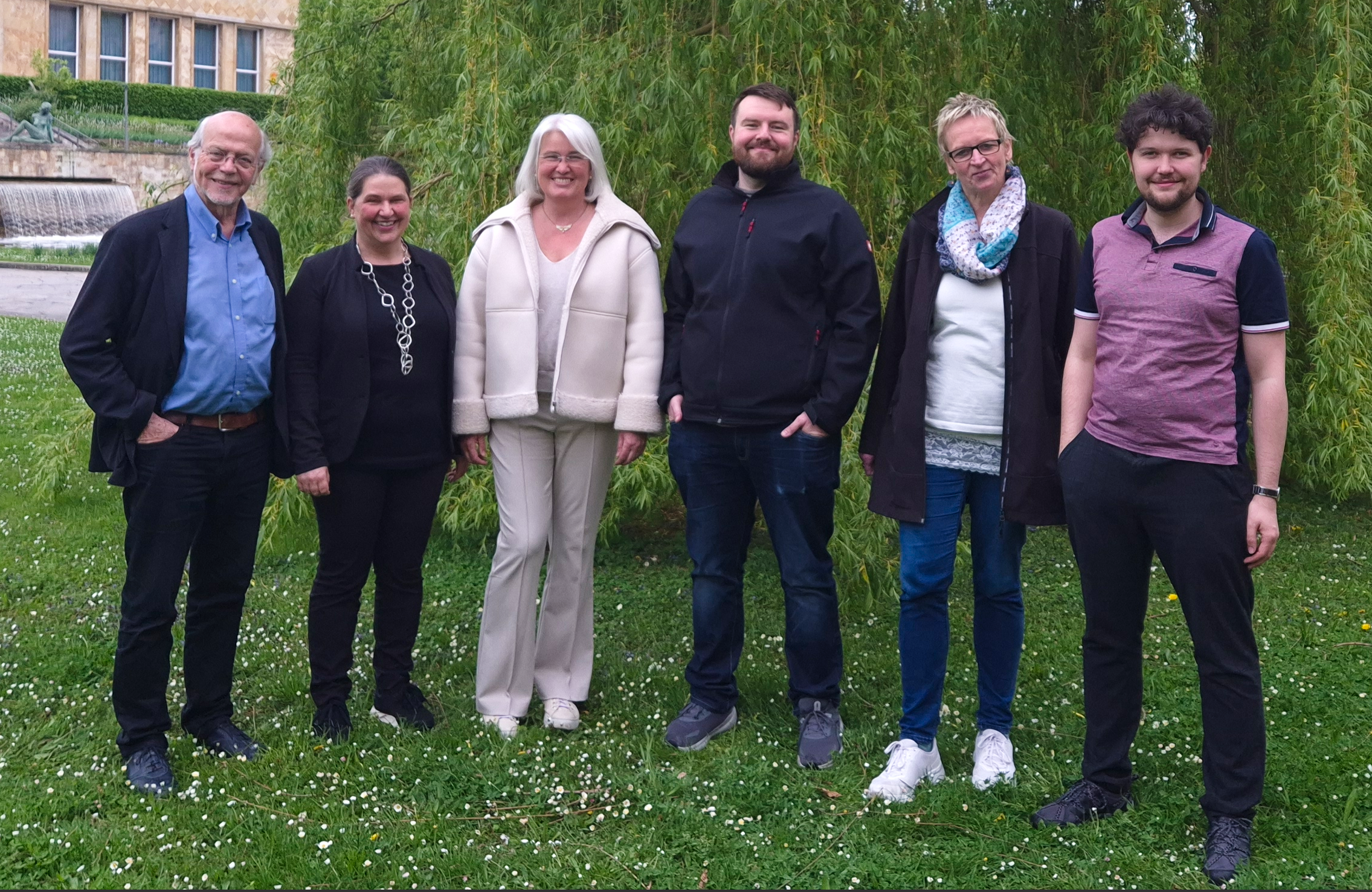 v.l.n.r.: PD Dr. Silke Leonhard, Markus Hochbaum (pädagogischer Mitarbeiter), PD Dr. Harmjan Dam, Johanna Hock (wissenschaftliche Mitarbeiterin), Chiara Pohl (SHK im Projekt Relithek.de), Prof. Dr. David Käbisch, Alexander Radej (wissenschaftlicher Mitarbeiter im DigiTeLL-Projekt SANE)