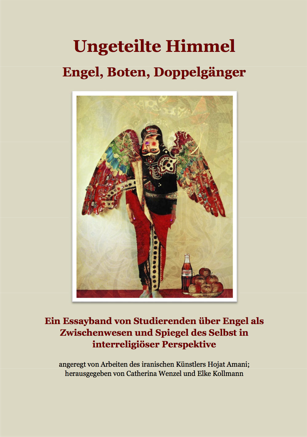 Es ist kein Zufall, dass diese Essays gerade jetzt geschrieben wurden, vielmehr hat der Kontakt zu dem iranische Künstler Hojat Amani, der durch die Ethnologin Doris Stambrau zustande kam, diesem kleinen Projekt den entscheidenden Impuls gegeben. Amani hat uns über seine Fotos mit Engelinstallationen und Kollagen einen neuen oder zumindest einen anderen Blick auf diese Boten, Lichtwesen oder gar Doppelgänger vermittelt. Er hat sich über mehrere Jahre mit Engeln befasst und dabei unter anderem Projekte durchgeführt, in denen er Menschen Flügel verlieh. Engel faszinieren Hojat Amani nicht nur als besondere alte urtümliche Wesen, in denen sich Menschheitswissen verdichtet hat. Er beschäftigt sich mit ihnen, um die Sehnsucht der Menschen nach Liebe, Gerechtigkeit, Sanftheit und Güte zur Sprache bringen zu können, die mit Engeln in Verbindung gebracht werden kann. Wie er das im Einzelnen umsetzte, erzählt Şeyma Çakır in ihrem Essay über Amanis ‚Engelkreationen’. Er selbst hat ebenfalls einen Text über sich und seine Arbeit zu diesem Band beigesteuert - Chasing Angels and Dialogue in Iran. Desweiteren finden Sie Beiträge von Katrin Muhl, Caitlin Printzen, Vera Bloemer, Mandy Böttcher, Sabine Heil, Daniela Thiele, Alessandra Bossert, Marcella Schwerdt, Elke Kollmann, Arne Laloi.