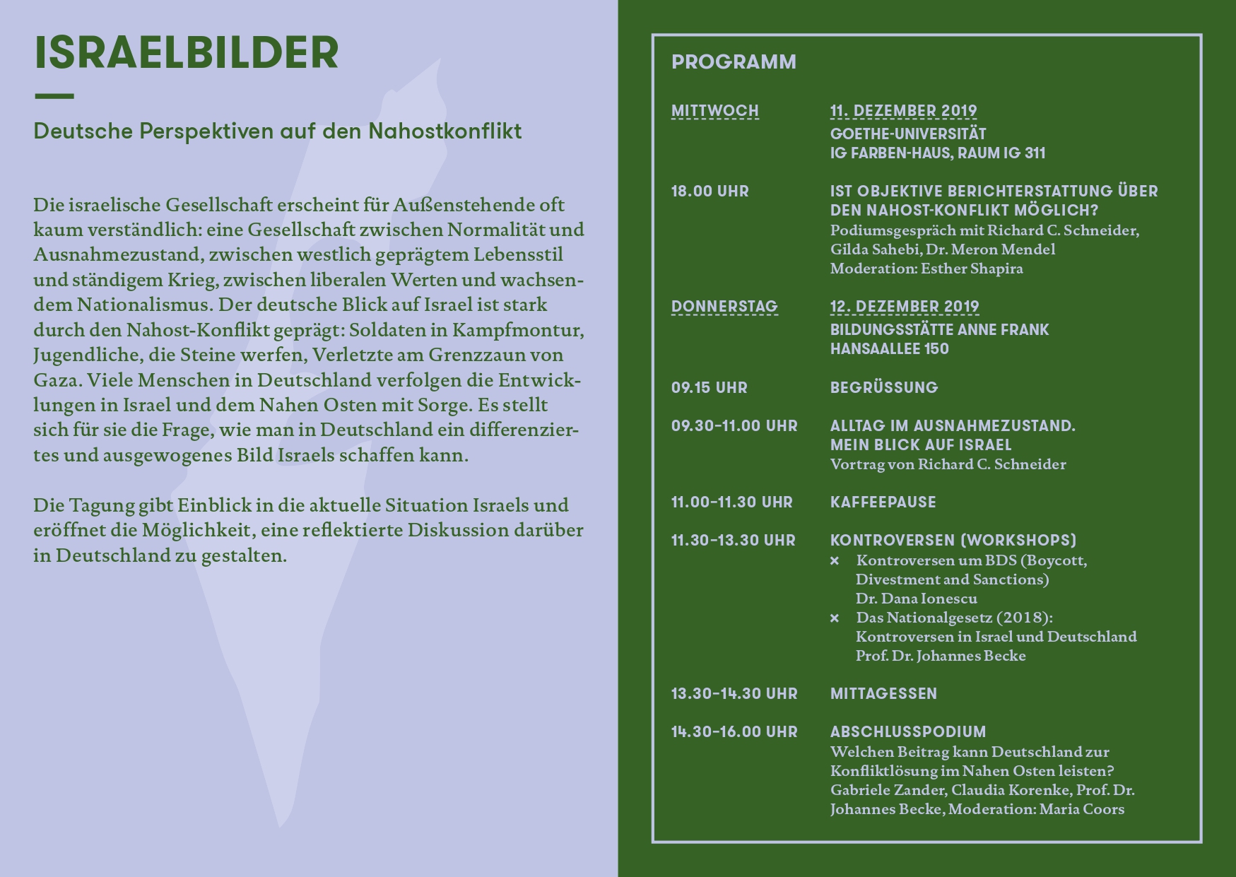 Die Tagung gibt Einblick in die aktuelle Situation Israels und eröffnet die Möglichkeit, eine reflektierte Diskussion darüber in Deutschland zu gestalten.